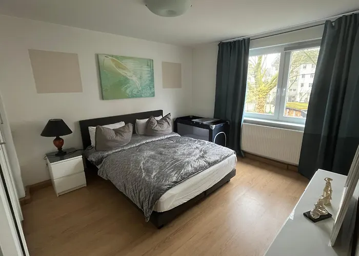 Эти 1-комнатные апартаменты расположены примерно в 15 минутах ходьбы от центра Эссена. Эти апартаменты площадью 70 м^2 позволяют быстро добраться до Музея Фолькванг, - достопримечательность находится в пределах 3 км.